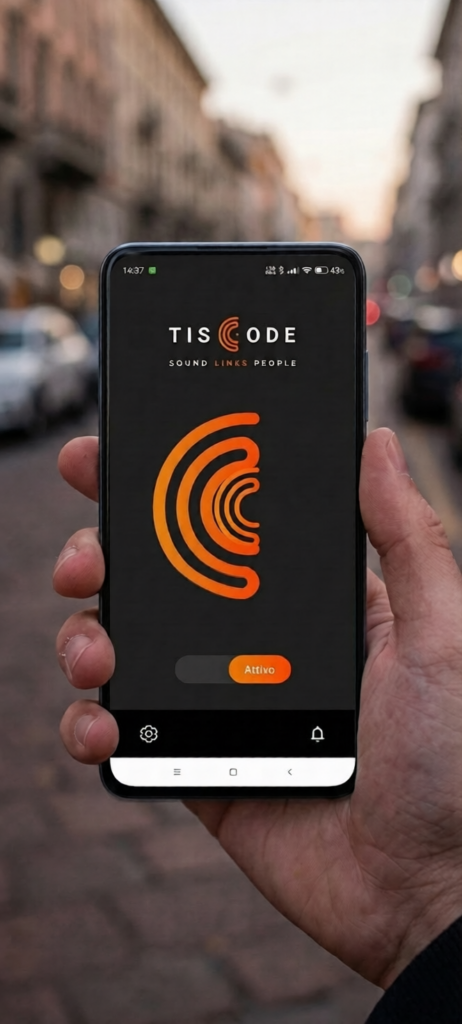 - Una volta diffuso dai MEDIA prescelti, il SEGNALE SONORO raggiunge i dispositivi mobili dei DESTINATARI (UtentI FinalI) presenti sul luogo di diffusione sonora, e sui quali è attiva la TISCODE APP.